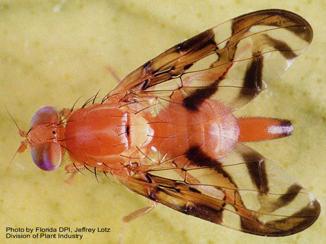 Picture of a Guava Fruit Fly on a sticky insert from a trap.